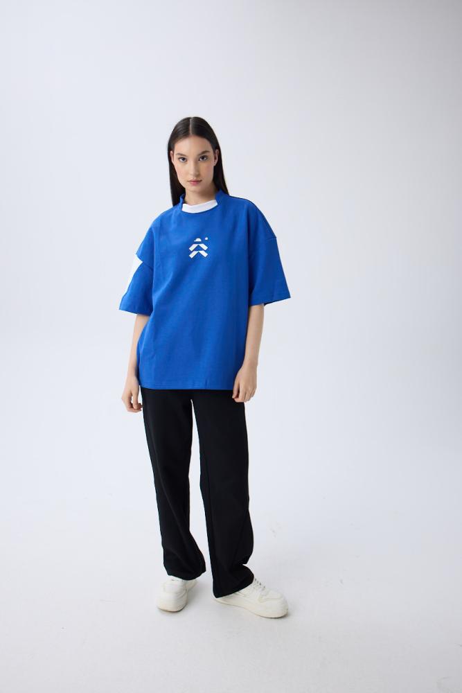 تيشيرت سبيلوفر أوفرسايز بشعار ربر على منتصف الصدر، مصنوع من قماش قطني 100% عالي الجودة بلون أزرق مميز. مناسب للجنسين.